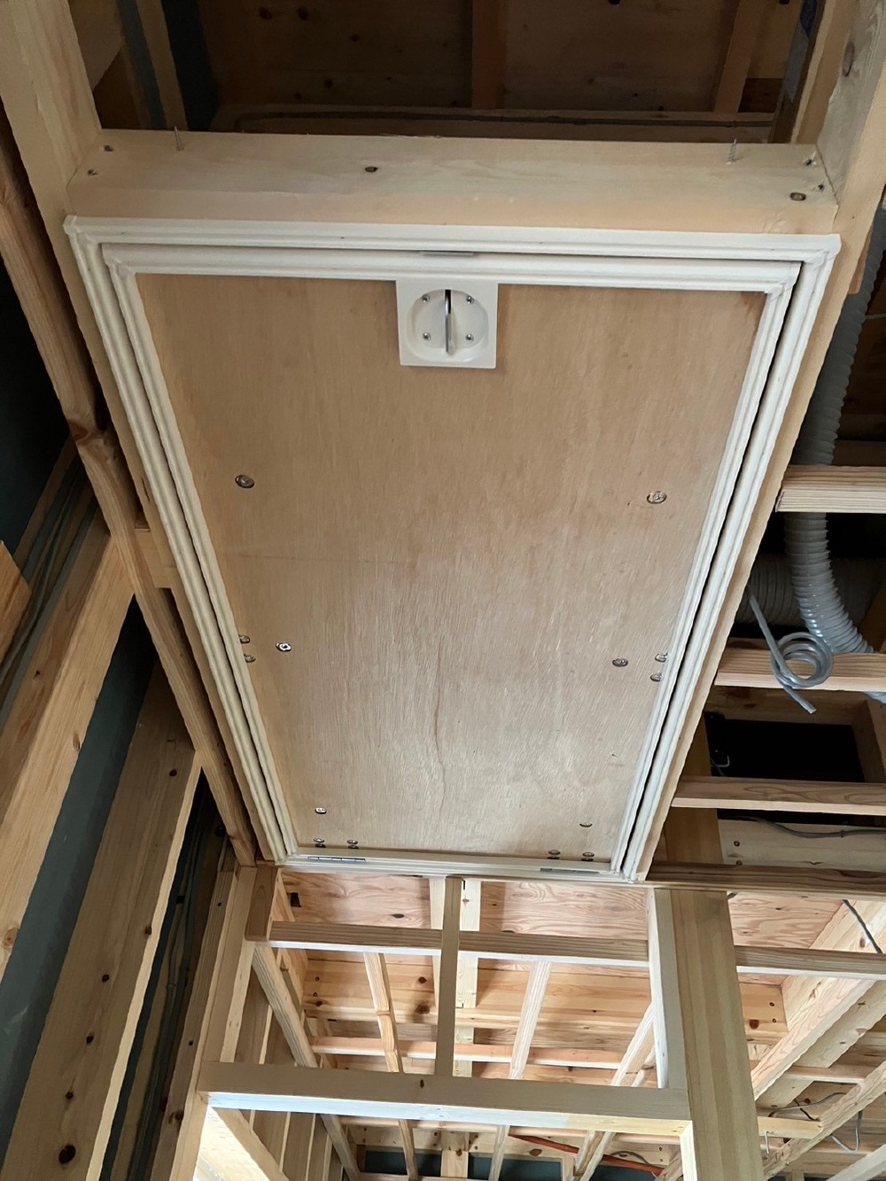 高いところに取り付ける換気システムの部材を取り付けたらいよいよ足場を解体します。