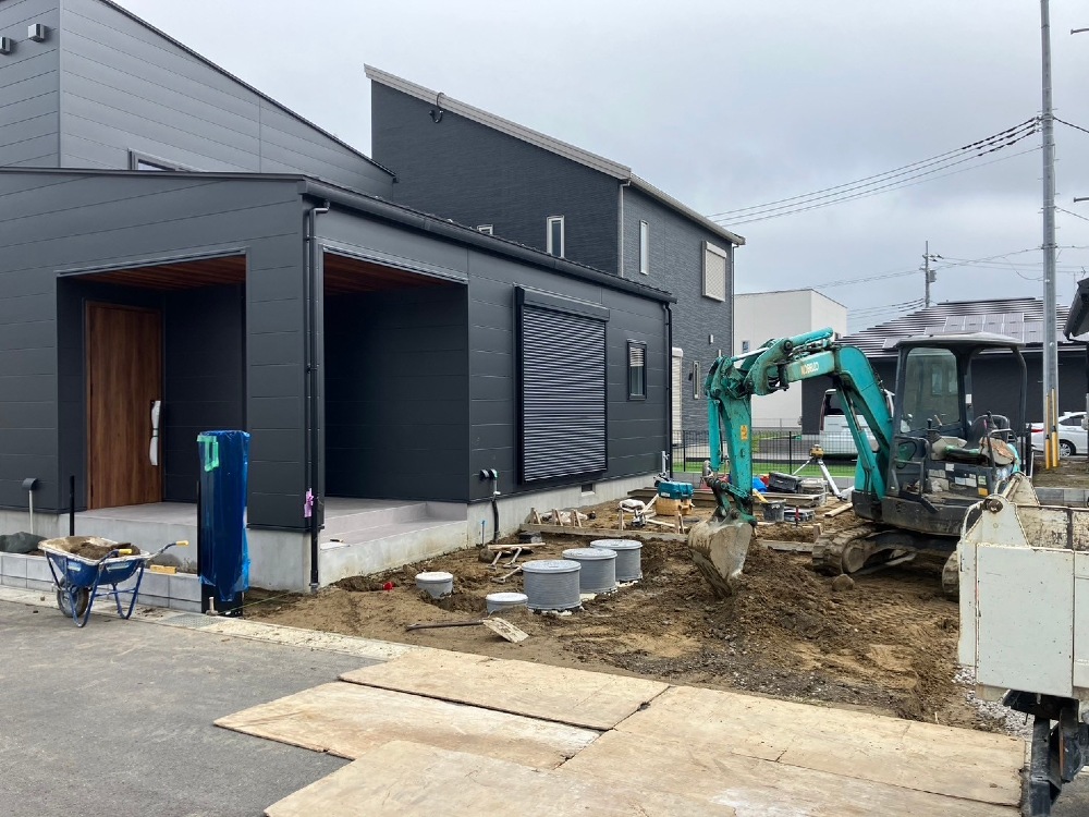 室外機や給湯器の設置が完了していよいよ外構工事も仕上げ段階です。